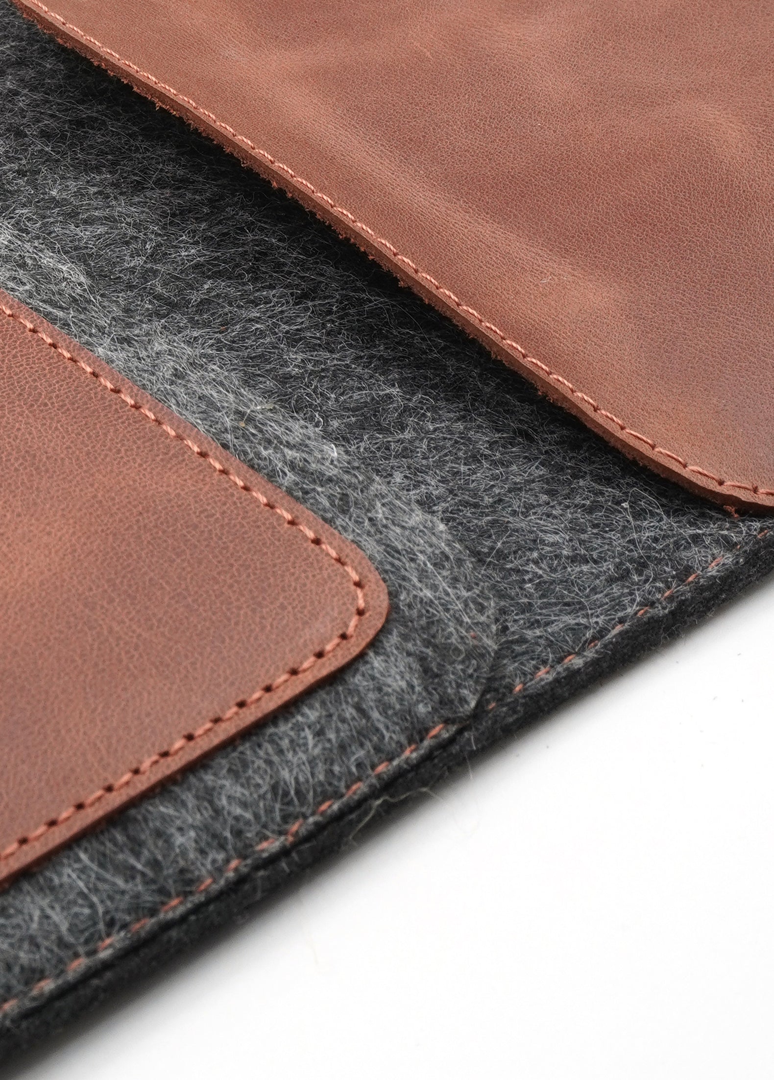 Felt and Genuine Leather 13-14 Inch Notebook & Tablet Organizer