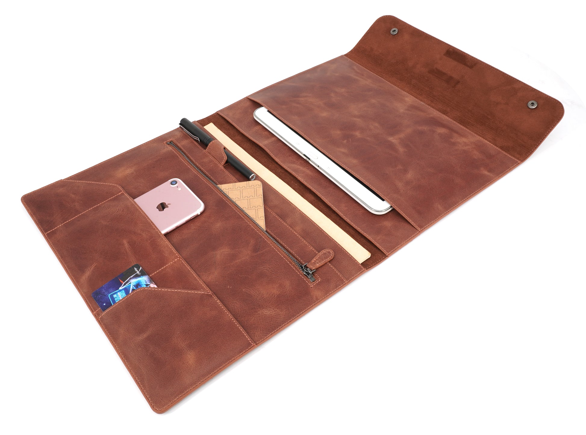 Genuine Leather Tablet Organizer Brown